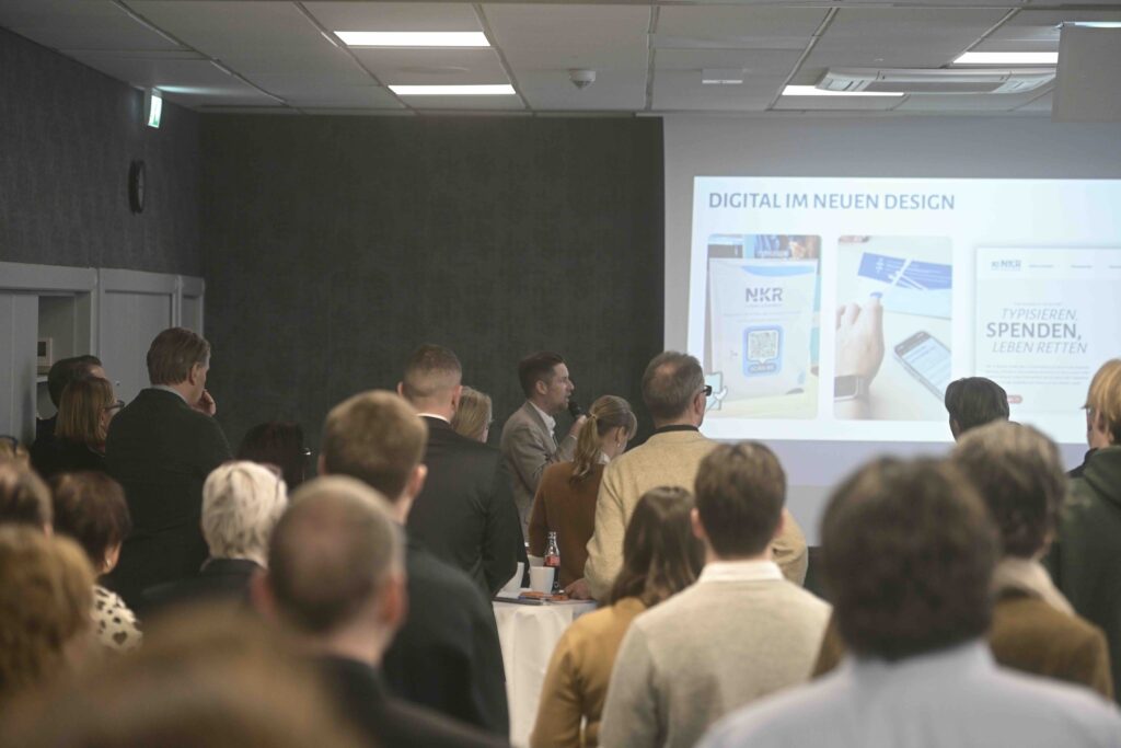 Großen Applaus erhielt gleich zu Beginn unseres Neujahrsempfangs der Rück- und Ausblick von Geschäftsführer Stefan Schmaus. Er informierte über anstehende Aktivitäten, geplante Projekte und Aktionen sowie über erfreuliche Entwicklungen bei den Spenderzahlen. Darüber hinaus stellte er neue Ideen und Maßnahmen vor, mit denen das NKR künftig noch stärker und zukunftssicher aufgestellt werden soll – auch im Hinblick auf Digitalisierung, den Einsatz von Künstlicher Intelligenz sowie geographische Ausweitung, wie beispielsweise bei unserer Typisierungsaktion gemeinsam mit der Initiative „Vielfalt rettet Leben“ 2025 in Hamburg.