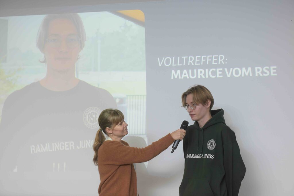 Anschließend berichtete der 22-jährige Maurice Gerber, Vorstandsmitglied des Sportvereins Ramlingen-Ehlershausen (RSE), von dem Anruf der Medizinischen Hochschule Hannover, in dem er erfuhr, dass er als Stammzellspender infrage kommt – nur wenige Monate nach seiner Typisierung beim Gilde Cup im vergangenen Sommer. Tief beeindruckt von Maikes Geschichte sagte er im Interview: „Ich war zunächst sehr überrascht, wie schnell ein passender Blutkrebspatient für mich gefunden wurde. Jetzt freue ich mich darauf, selbst spenden zu können.“